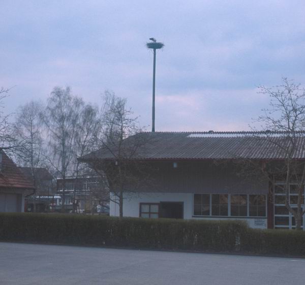 Störche kurzzeitig den im Frühjahr 2002 auf einer Gewerbehalle neben
