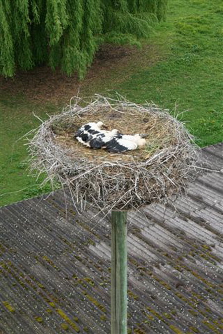 Die drei Jungstörche stellen sich